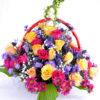 Lovely flower basket with a mixture of both colored roses and exotic flowers.